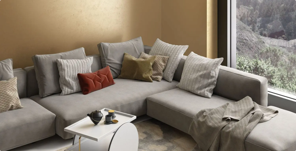 - Шелковая штукатурка не выгорает под солнцем или искусственным освещением.