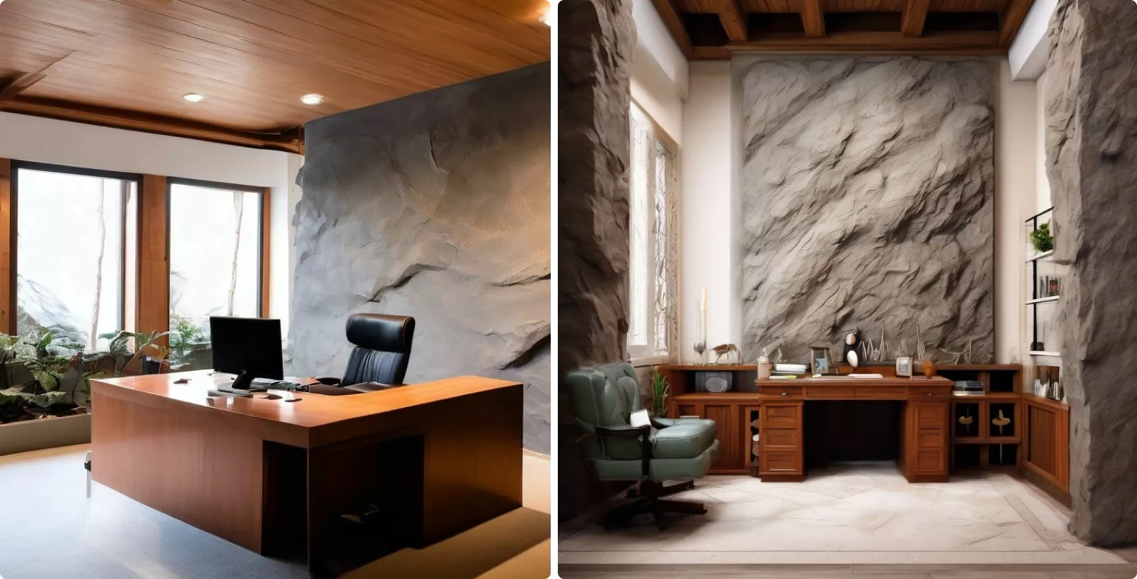 • Скала в кабинете подчеркивает статус владельца и создает атмосферу уединения.