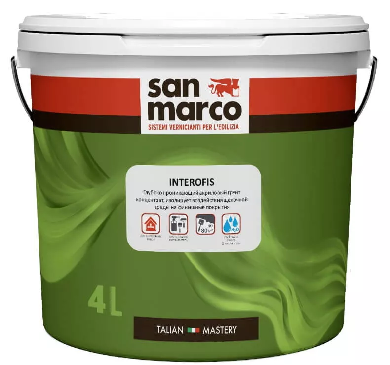 INTEROFIS - предназначен для укрепления различных видов поверхностей. Создает идеальную основу для идеальной адгезии с последующими слоями, изолируя их от воздействия щелочной среды. INTEROFIS наделен высокой проникающей способностью и в состоянии обработать даже микроскопические капилляры оштукатуренных поверхностей. Сертифицирован и рекомендован к применению в детских, образовательных и медицинских учреждениях.