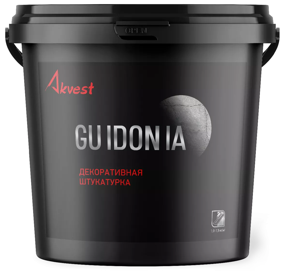 Декоративная штукатурка GUIDONIA ТМ Akvest материал на акриловой основе с микромрамором созданный для отделки помещения, как в современном, так и в классическом стиле. Подходит для нанесения на подготовленные строительные поверхности. Это самый простой способ получить эффект гладкого и фактурного арт-бетона или натурального камня, а мелкозернистый наполнитель обеспечит тонкий рисунок (размер зерна 0,2 – 0,5 мм).