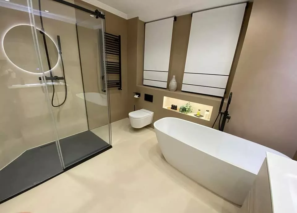 Никаких стыков и швов — покрытие создает монолитный эффект, упрощая уход и повышая гигиеничность.
