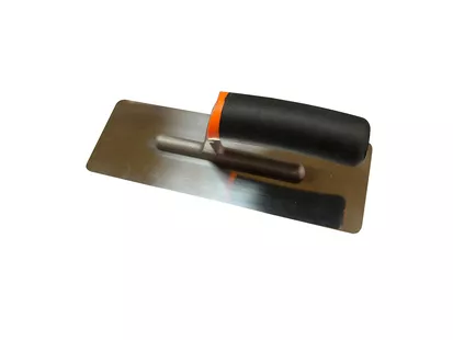 Применяется для нанесения декоративных фактурных покрытий, красок и венецианских штукатурок. Изготовлена из нержавеющей стали, крас сточены, двухсторонняя полировка, радиус скругления - 5 мм, удобная деревянная ручка